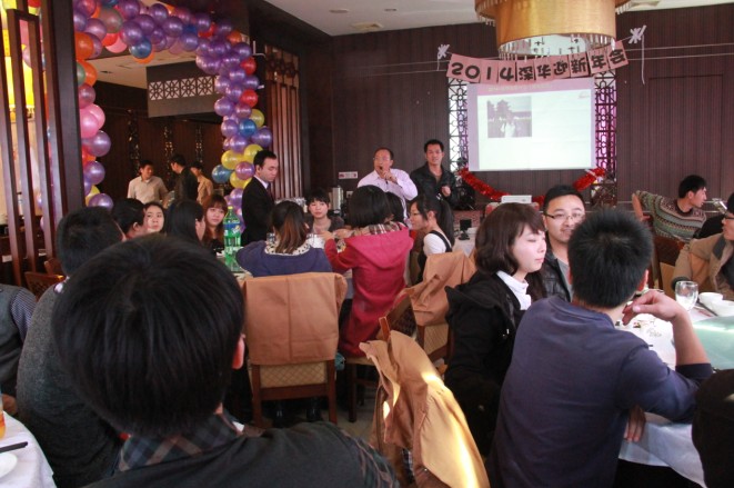 廣州市深華生物技術有限公司總經理張清杰先生首先上臺致新年賀詞,張總回顧了我們深華公司2013年的心路歷程,肯定了2013年各部門的工作也分析了2013年的得失,同時感謝那些還奮斗在前線工地及各研究院校第一線而沒有趕來參加年會的同事們,廣州深華公司的發(fā)展離不開同事們的努力也離不開各位廠家和經銷商的支持。